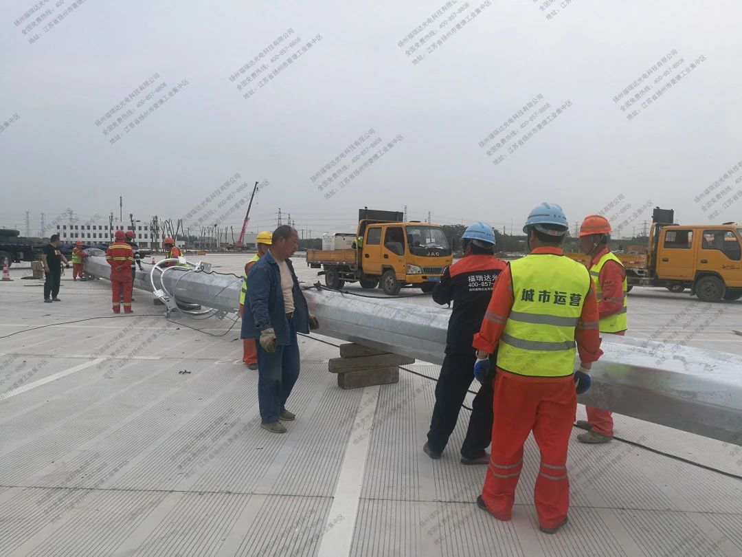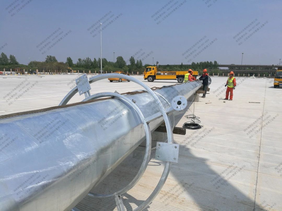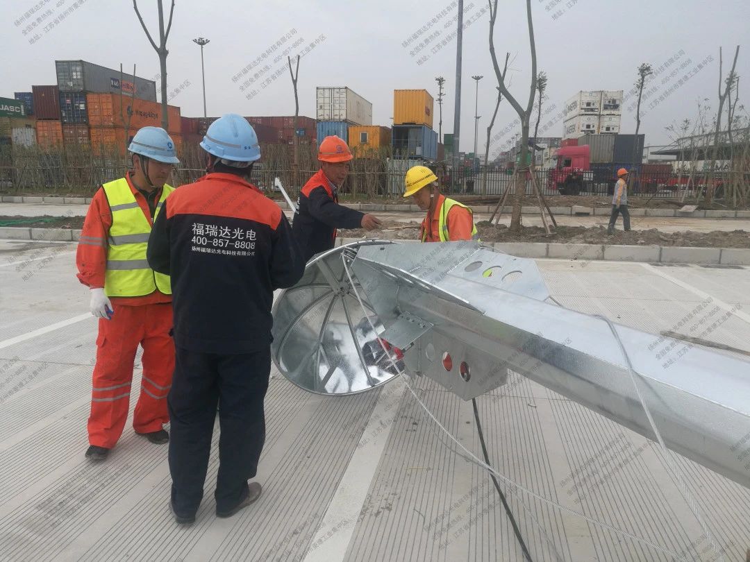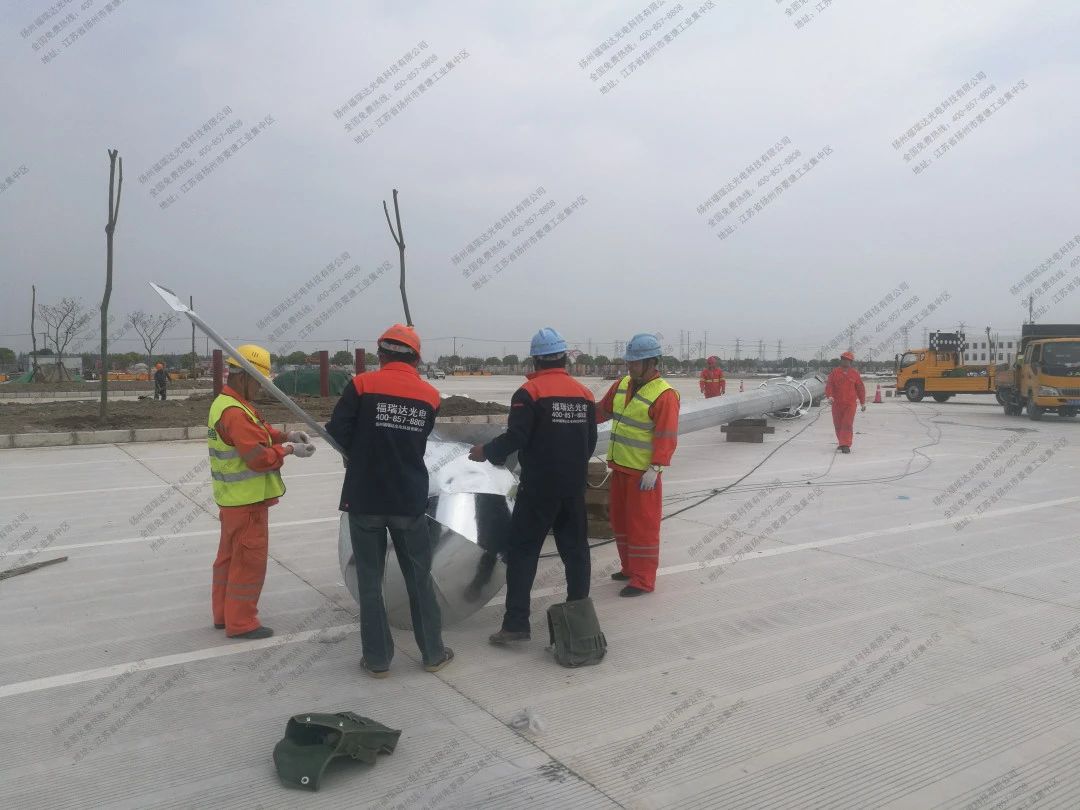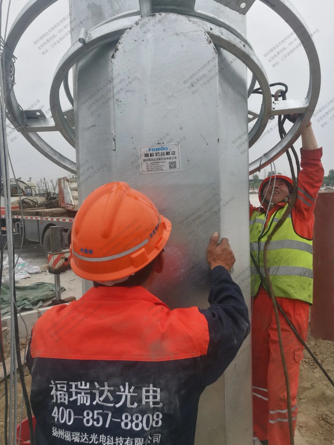 五一勞動節假日開始的第一天,我公司順利將65套35米高雙升降系統高桿燈,交貨到上海某港口。工人們也放棄假期休息,以激昂飽滿的工作狀態、分工有序地投入到施工安裝現場,確保工期按時保質完成。