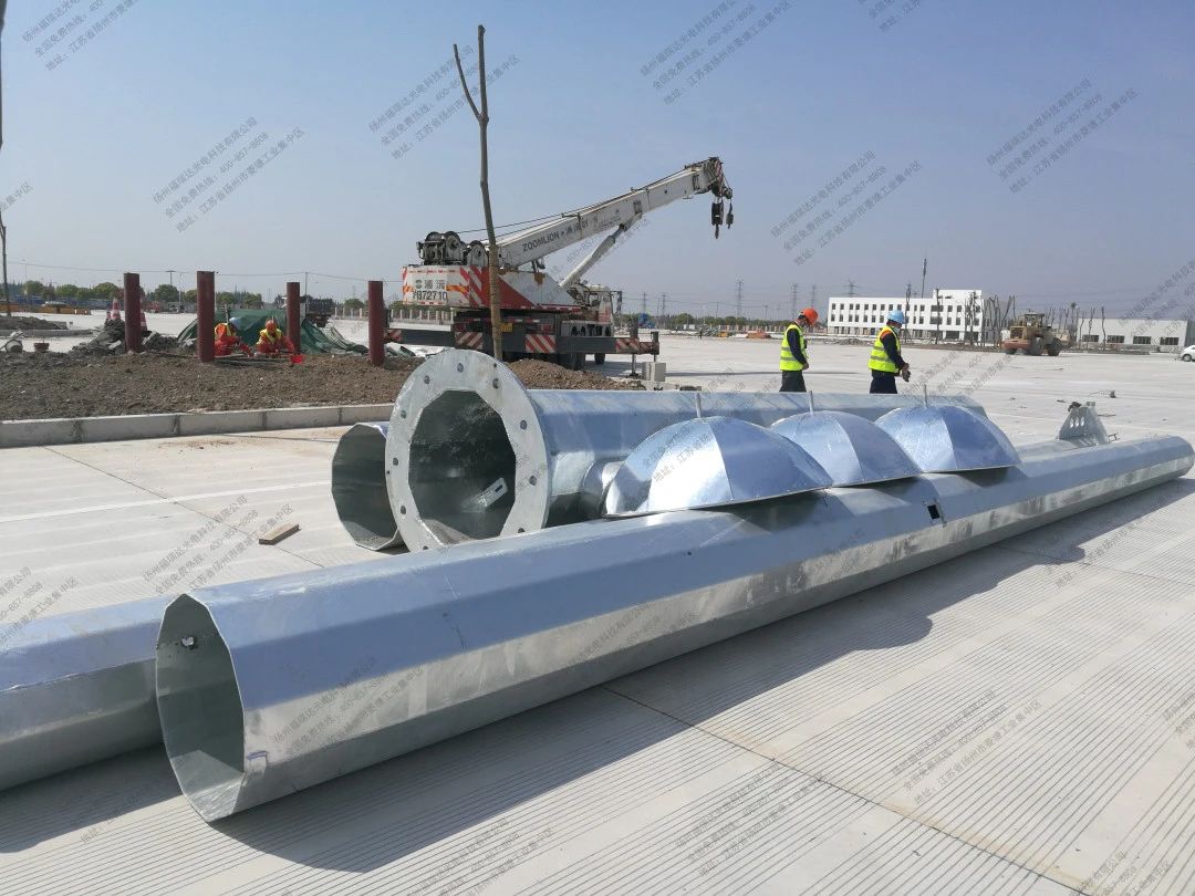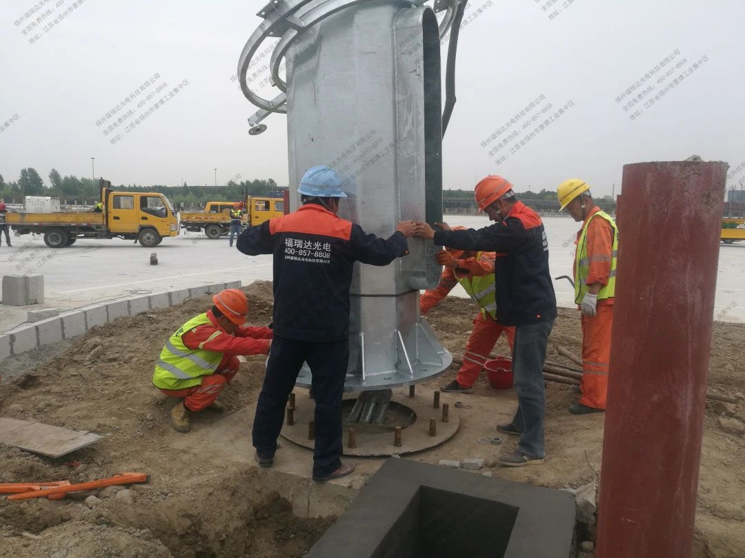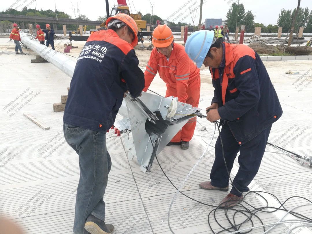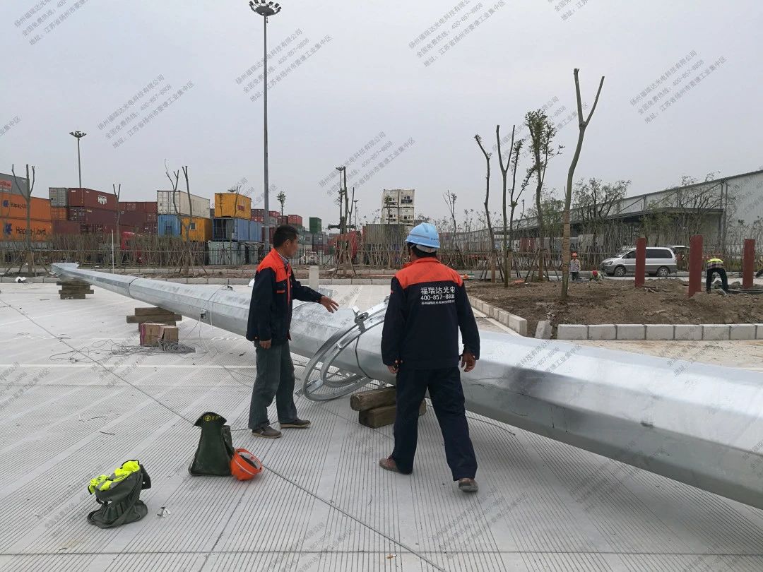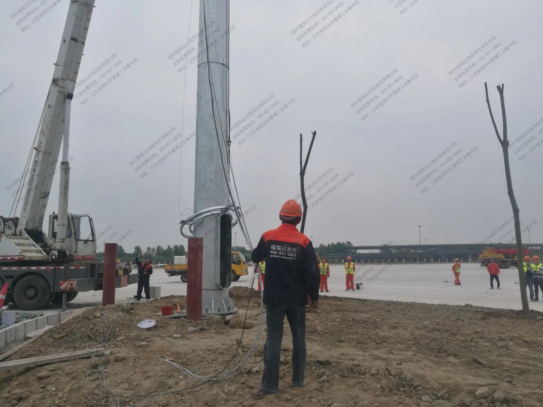 五一勞動節假日開始的第一天,我公司順利將65套35米高雙升降系統高桿燈,交貨到上海某港口。工人們也放棄假期休息,以激昂飽滿的工作狀態、分工有序地投入到施工安裝現場,確保工期按時保質完成。